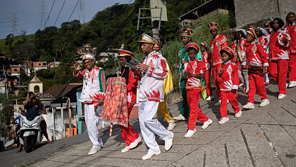Members of the Bright Star of Bethlehem group paraded through Morro da Formiga, a favela in the Muda sub-district of Grande Tijuca, in Rio de Janeiro’s north zone. Dressed in colourful costumes, they moved to the steady beat of drums as residents watched from doorways and balconies.