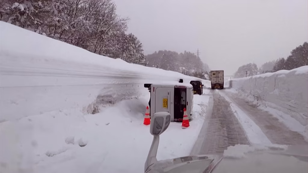 In Aomori, images show a home badly damaged under the weight of the snow, and residents are struggling to move through streets lined with deep drifts.